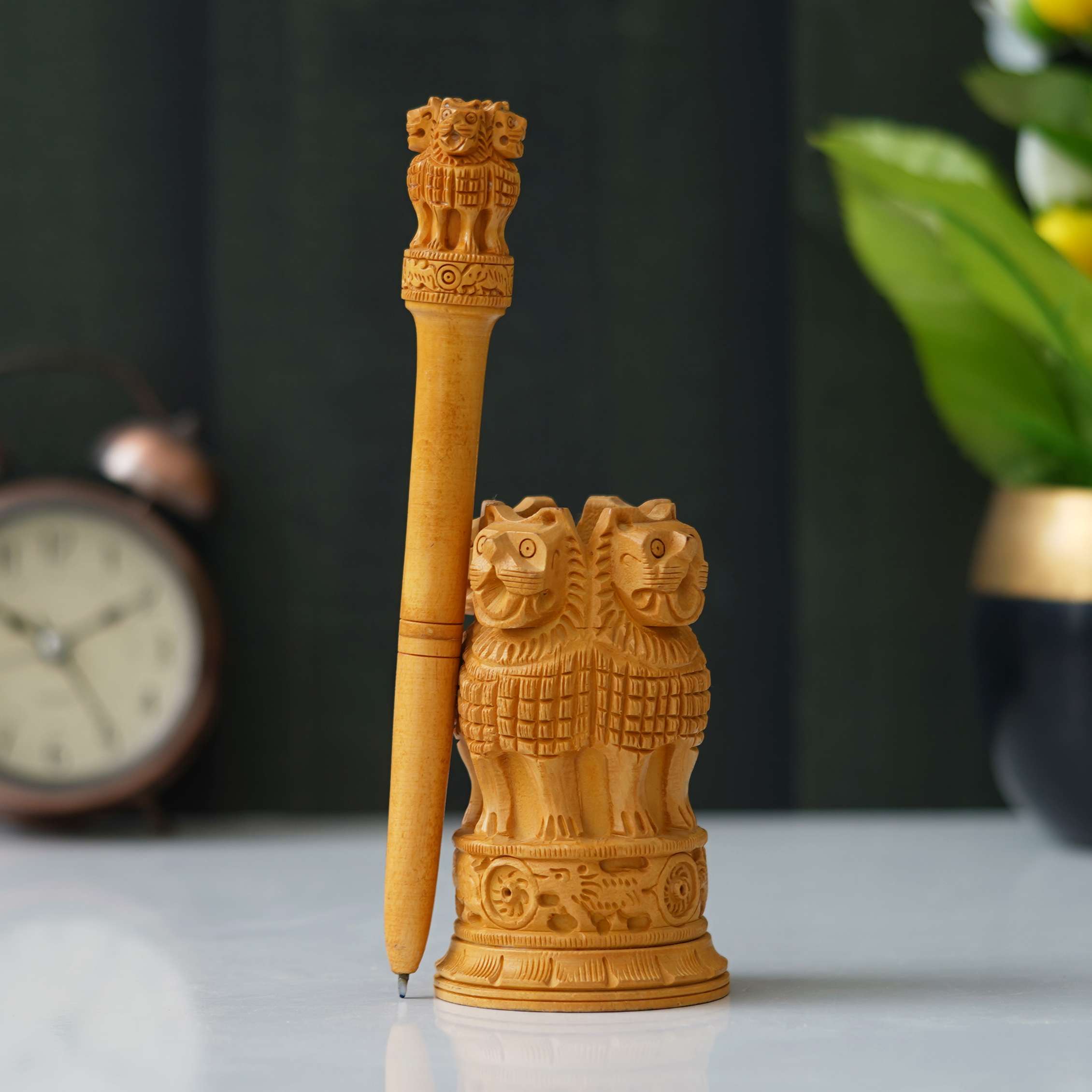 Add a touch of Indian heritage to your home decor with our handcrafted wooden Ashoka Pillar replica. Inspired by the iconic Ashoka Pillars found throughout India, this meticulously crafted piece captures the elegance and grandeur of ancient architecture. Made from high-quality wood and finished with intricate detailing, this replica is a stunning addition to any living space or office. Whether displayed on a mantel, shelf, or desk, it serves as a reminder of India’s rich history and cultural significance. Bring a piece of timeless elegance into your home with this exquisite wooden Ashoka Pillar replica
